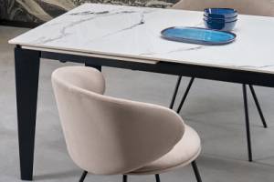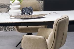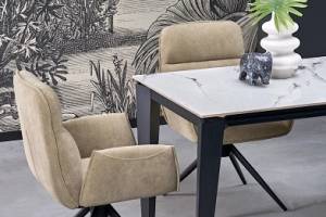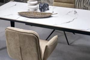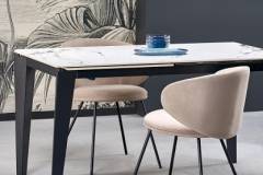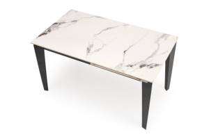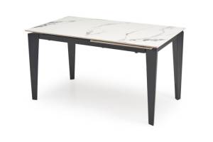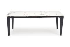 Masa extensibila FELIX WHITE din marmura alba, metal negru 141-201x81xH76cm