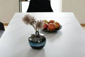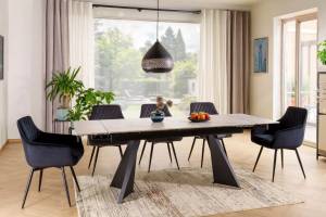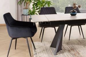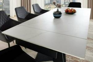 Masa extensibila LACONI din ceramica alba, metal negru 160-220x90xH77cm