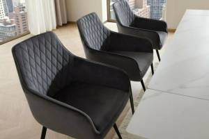 Scaunele NU sunt incluse in pret dar se pot achizitiona separat: https://www.mobelhaus.com/cauta?termen=linea+velvet