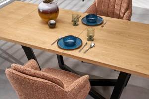 Masa extensibila MASSIVE 2 din placa furniruita si lemn masiv stejar natural, metal negru 160-250-(340)x90xH77cm