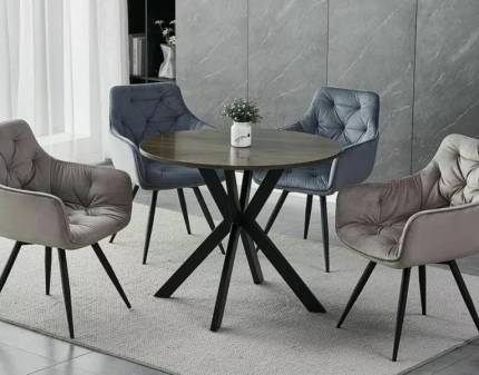 Scaun tapitat MANGO VELVET rotativ, catifea grey 57608xH83cm, picioare negre