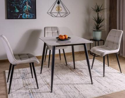 Scaun tapitat CHERRY VELVET catifea grey 57x58xH87cm, picioare negre