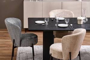 Scaun tapitat K590 material textil-plusat grey 55x66xH80cm, picioare negre