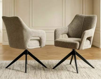 Scaun tapitat NAO NOELLE material textil cappuccino 60x62xH82cm, picioare si cadru negru