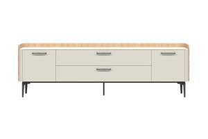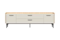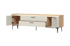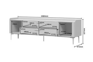 Comoda tv cu 2 usi si 2 sertare AIR 209x63x47cm Pepper White/ stejar Furneo - sticla cu model de marmura Calcatta Oro, cadru, picioare si manere Antracit