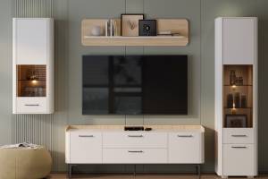 Pretul afisat nu include comoda TV, coprurile suspendate, masuta, montajul, alte piese de mobilier si accesoriile din imaginea de prezentare a produsului.