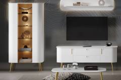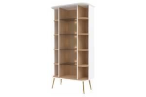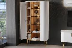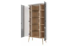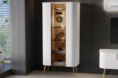 Vitrina cu 2 usi sticla Parsol GALET 91x179x47 cm alb mat, picioare si manere auriu neon