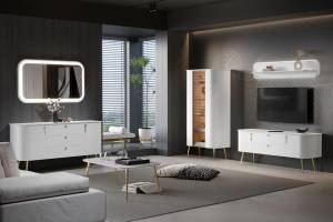 Pretul afisat nu include alimentarea LED, comoda mare, comoda tv, raftul, oglinda, masuta, montajul, alte piese de mobilier si accesoriile din imaginea de prezentare a produsului.