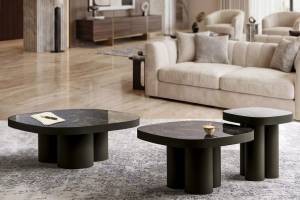 Masuta STELLA B din ceramica Spaniola Vulcano negru lucios, metal cupru 75x75xH43cm