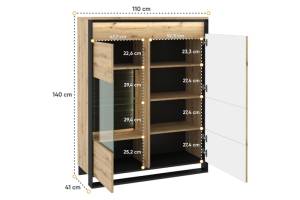 - vitrina inalta are iluminare LED atat in interiorul compartimentului cu sticla cat si in exterior in partea de sus