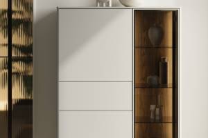 - sistem de iluminare LED in interiorul vitrinelor si comodei (usa cu sticla)