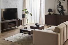 - comoda tv are 3 compartimente din care unul deschis fara usa