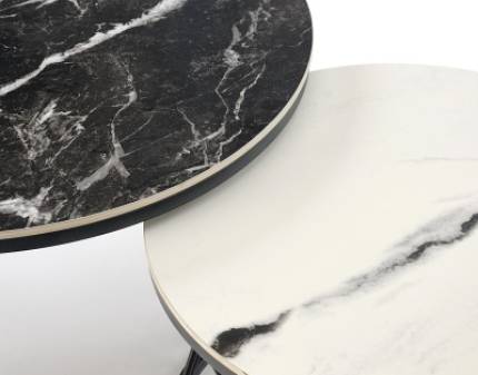 Set 2 masute FLAMINGO White Black din piatra sinterozata cu efect de marmura alba/ neagra, metal negru 60xH40cm / 80xH46cm