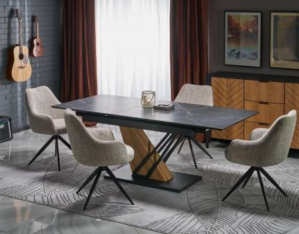 Masa extensibila SENTO BLACK din ceramica neagra, lemn negru 120-180x80xH75cm