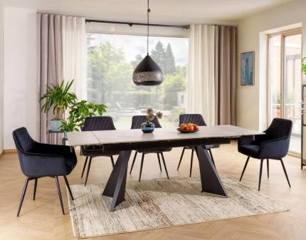 Masa extensibila WESTIN CERAMIC MARIN din ceramica italiana Piatra de Savoia gri, metal negru 160-240x90xH77cm